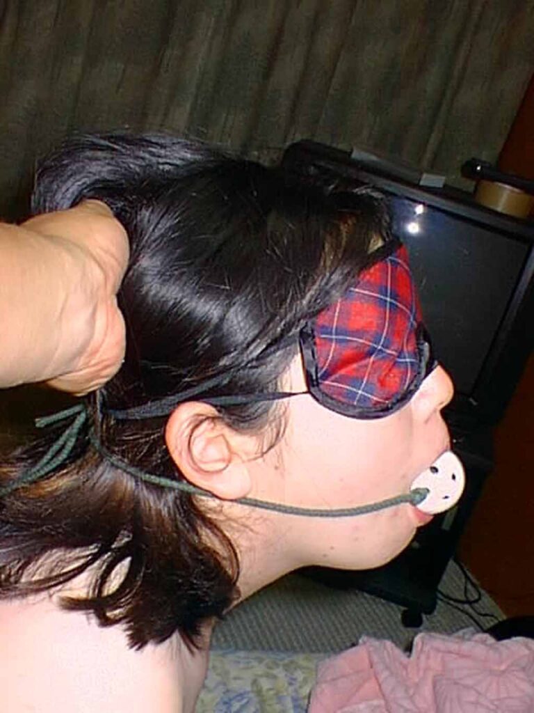 - 自分の妻にボールギャグを咬ませ唾液を垂らさせ楽しんでいるSM画像 01